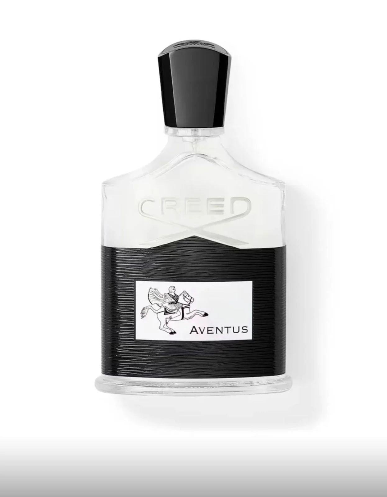 Signature Horse & Rider Emblem — Iconic Aventus artwork on label .